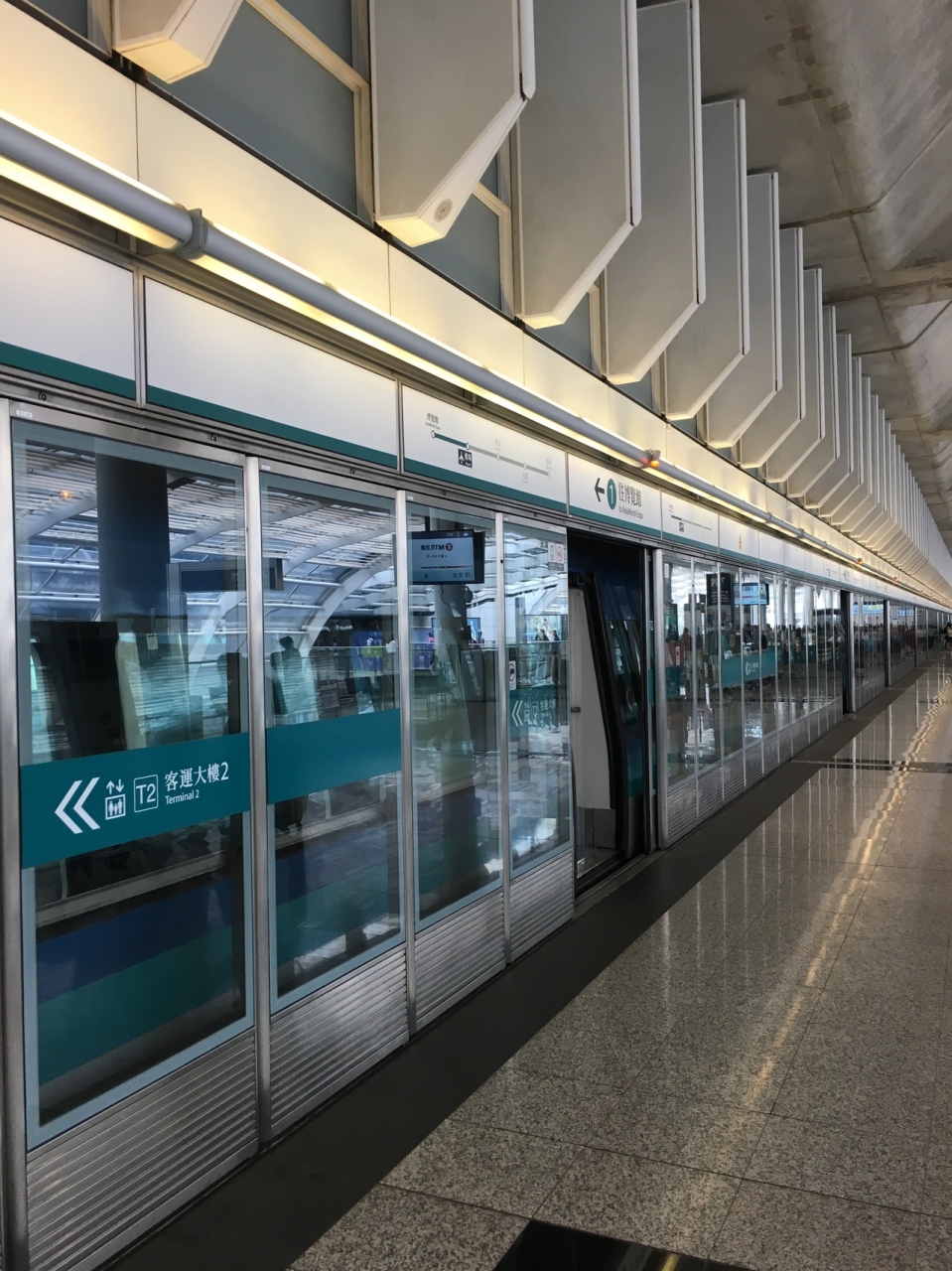 香港国際空港から九龍・香港島に行くには一番早い移動手段です。今回も到着ロビーを出て真っ直ぐ歩き50mでエアポートエクスプレスのホーム。改札は無いので少し戸惑う方もいらっしゃるかもしれないですが、乗車券を購入しなくても大丈夫です。九龍又は香港駅で後払い可能です。九龍駅までは20分程度で到着し、そこから先は専用のシャトルバスでホテルまでスムーズに行くことができます。乗車料金は九龍まで90HKDです。少し高い気がしますが早くて便利です。