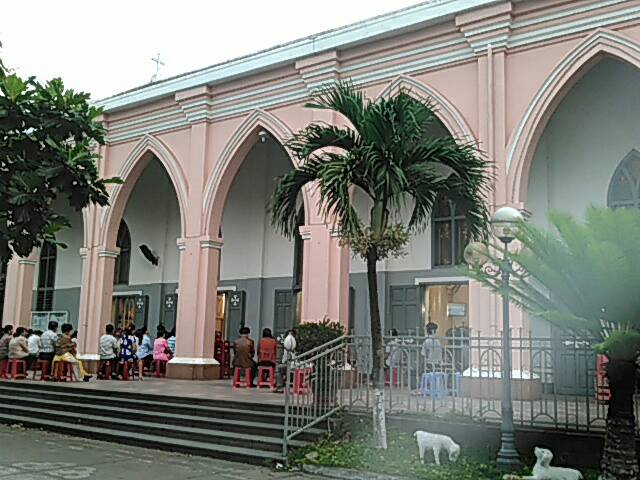 ハン市場の近くにレートの良い両替店があるので、市内からハン川を目指して歩いていたら、チャンフー通の繁華街の中に、ピンクのひときわ目立つ美しい建物がありました。普段は鍵が掛かって中には入れませんが、日曜日のミサのあるときは、中で見学できます。仏教が8割を占めているベトナム人の中で、カトリックの歴史ある景観に触れるのも良いでしょう。街中の散策のときに思わず写真を撮りたくなる建物です。
