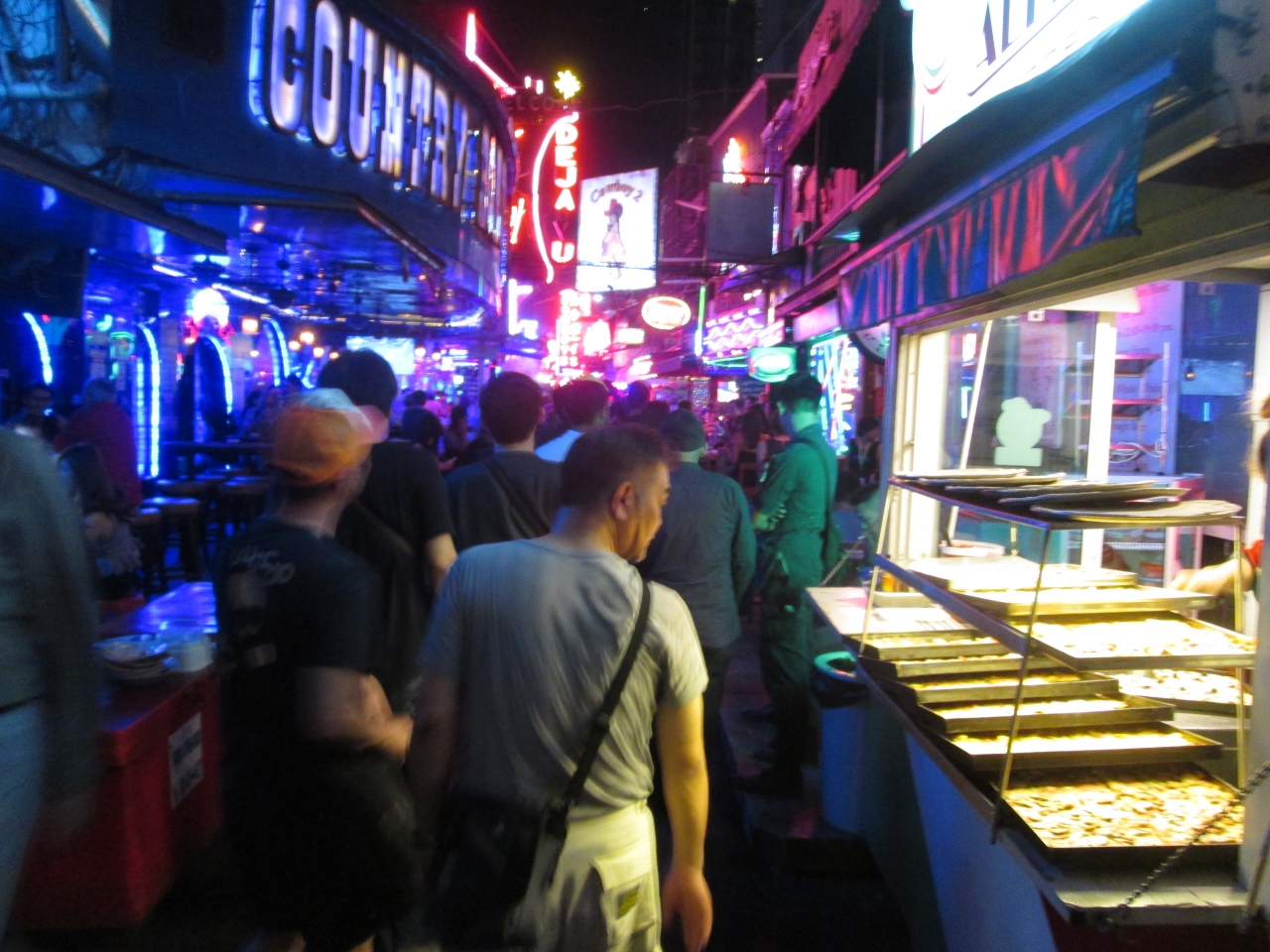 ソイカウボーイにはバーだけでなく飲食店、屋台が並んでいました。入口付近にはおいしそうなピザ屋さんがあり、小腹がすいたときに利用しました。近くにあるターミナル21のフードコートは22時で閉店しますが、このストリートの飲食店は0時過ぎまで営業していました。