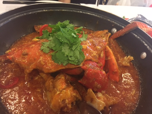 本島からシンガポールボードウォークを歩いて セントーサ島へ行きました。(無料で島へ渡れます。)橋を渡ったすぐに店がありました。蟹が時価で注文に困った。などの口コミを見たので、S$50のコースを事前予約しました。料理が次から次に出てきます。ほかの料理はいまいちでしたが、チリクラブは最高においしかった。病院とかで使用してる使い捨ての手袋を持参したので手の汚れを気にせず蟹を食べれました。もともと小食ですが食べきれないほどの量でした。ワインをボトルで頼みましたが 伝票の金額が間違っていているのに気付いたのが カードの清算後で。訂正してもらうのにかなり時間がかかりました。そこだけが残念です。