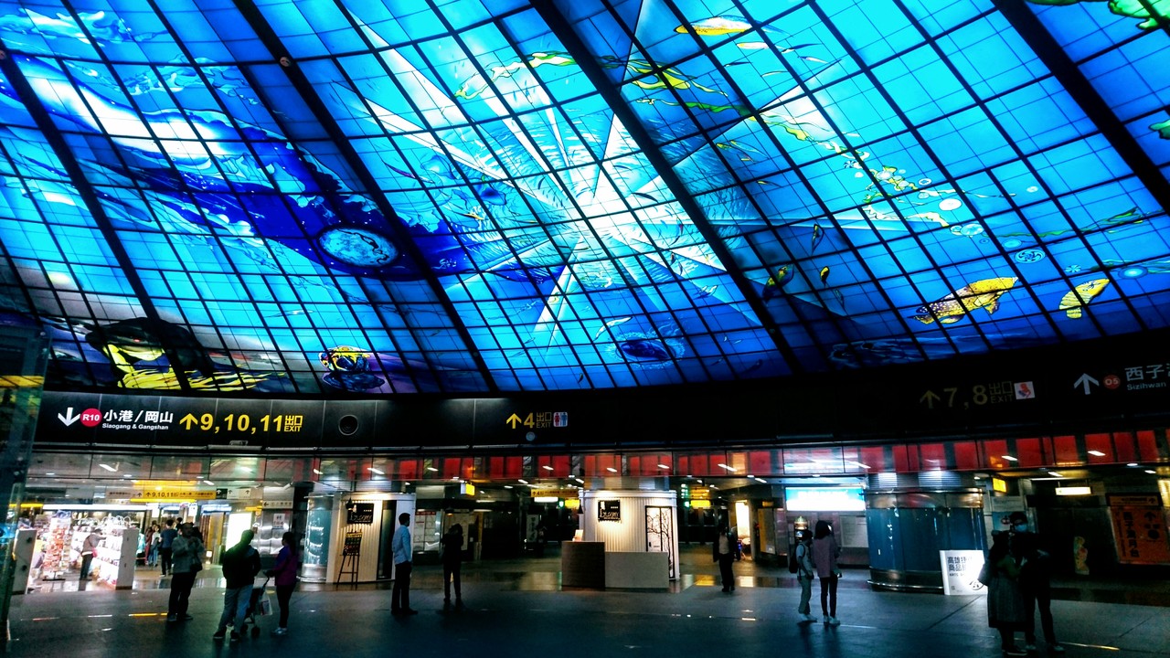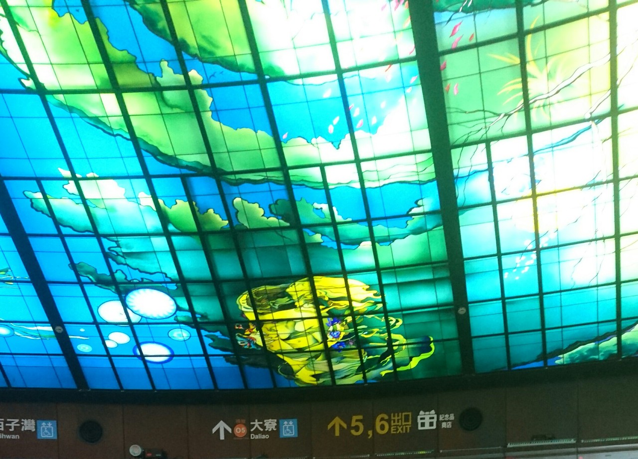 高雄にある観光スポットの1つ、美麗島駅の構内にあるステンドグラスのアート。天井、壁面及び柱がすべてステンドグラスであり、30分ほど、歩きながら見とれてしまいました。写真で見るよりも、キレイだなという印象です。ここまで、アーティスティック駅は珍しいなと感じました!