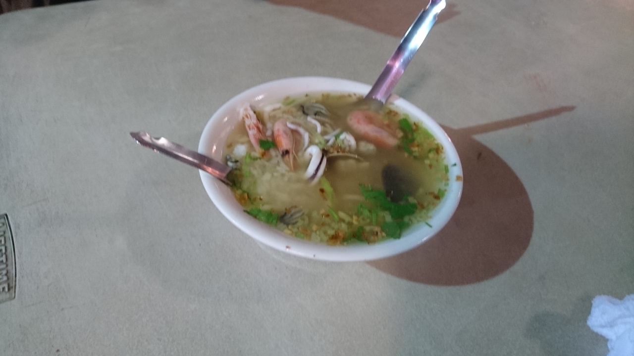 高雄では、一番有名な夜市。大通りを歩行者天国にして通りの両側に出店があり、中央にはテーブルや椅子、ゴミ箱等がありました。台北市内の夜市に比べ、やはり海鮮系の料理が非常に多い!やはりここは、海鮮料理を食べたいと思い、海鮮粥を食べました!塩ベースであっさりしてて美味しかったです!