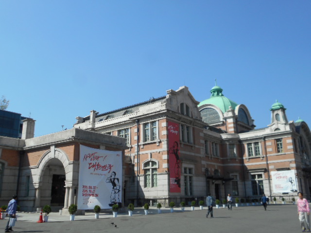 文化駅ソウル284は、現在のソウル駅の右手に在る東京駅に似た建物で、重厚なレンガ造りです。広場ではパフォーマンスをしている人も居て、館内では展示などがありますが、訪れた時は閉館していましたので、外観のみ見学しました。ソウルには、その時代に日本が建てたその他の建築物もあります。夜はイルミネーションがあるそうです。