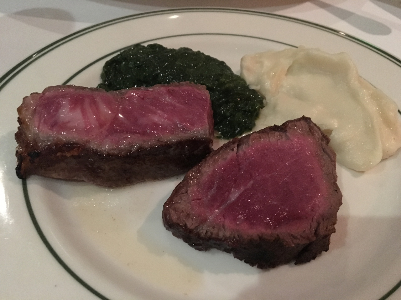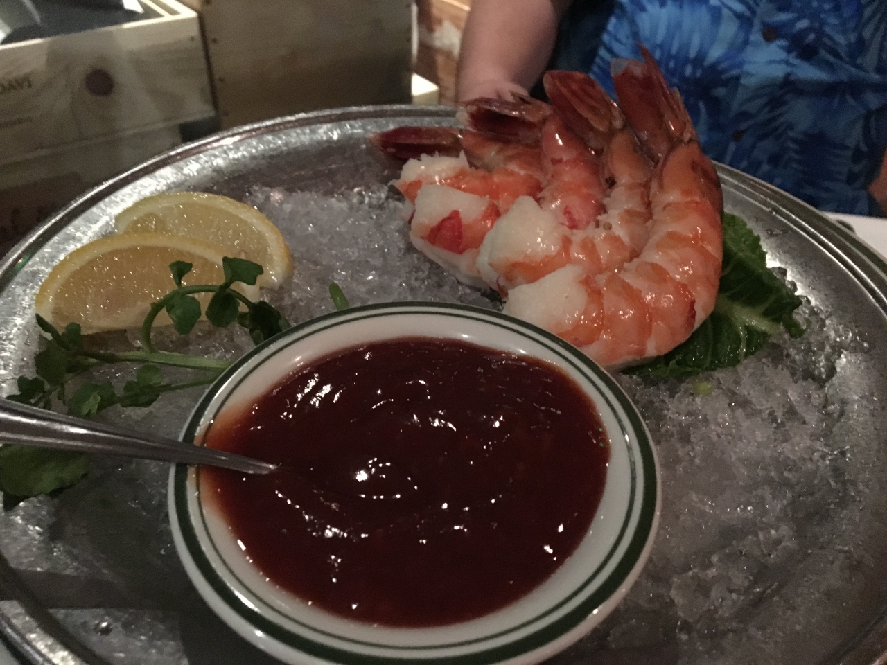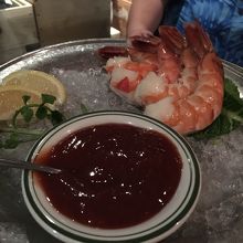 シュリンプカクテル、Tボーンステーキを注文。マッシュポテトとほうれん草も頼みました。お肉は柔らかくて美味しかったです。