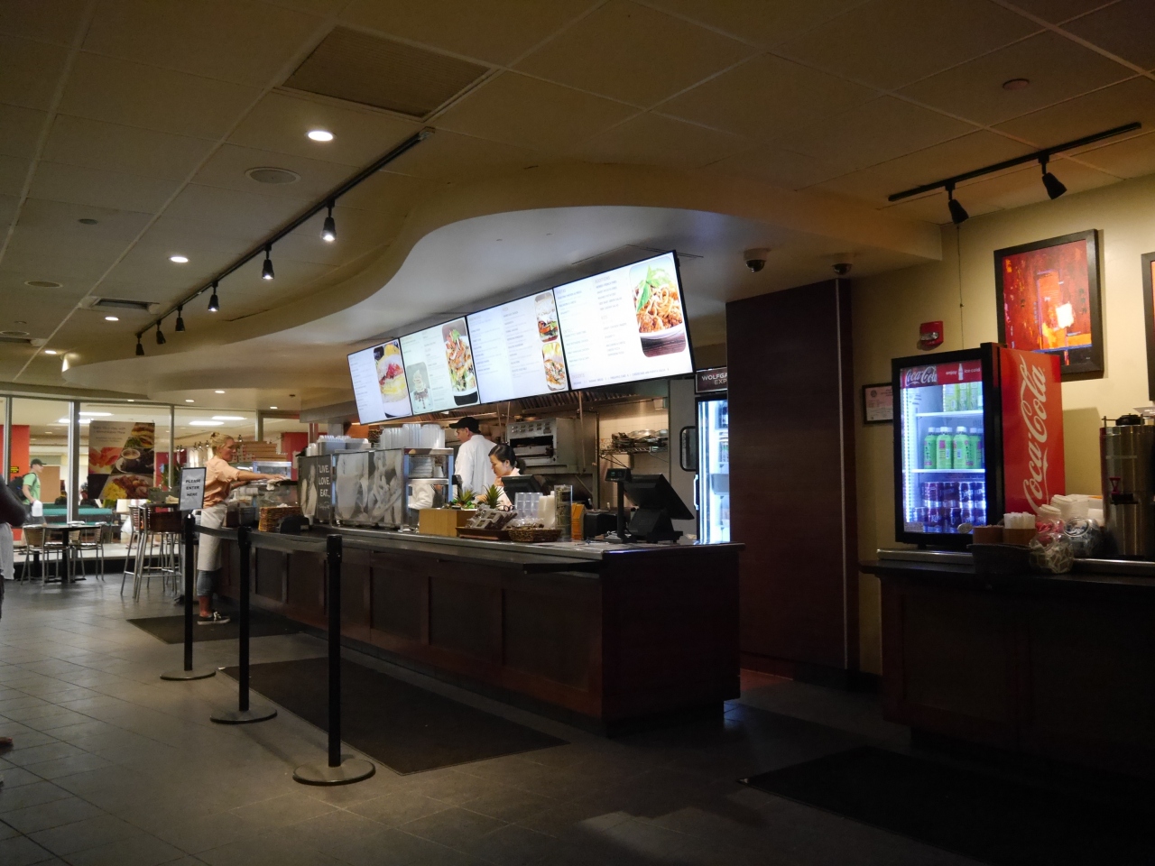 カラカウア通り沿いのアストンワイキキビーチホテル1階にあります。ピッツァが評判のファーストフード店の様なレストランです。