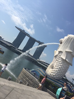 有名な観光地で次々人が来ますが、マーライオンしかなく写真を撮り終えると去っていくので込み合った感じはしませんでした。近くに小型のマーライオンもあります。どちらもできて45年だそうです。マリーナベイサンズを背景に入れて写真が撮れました。