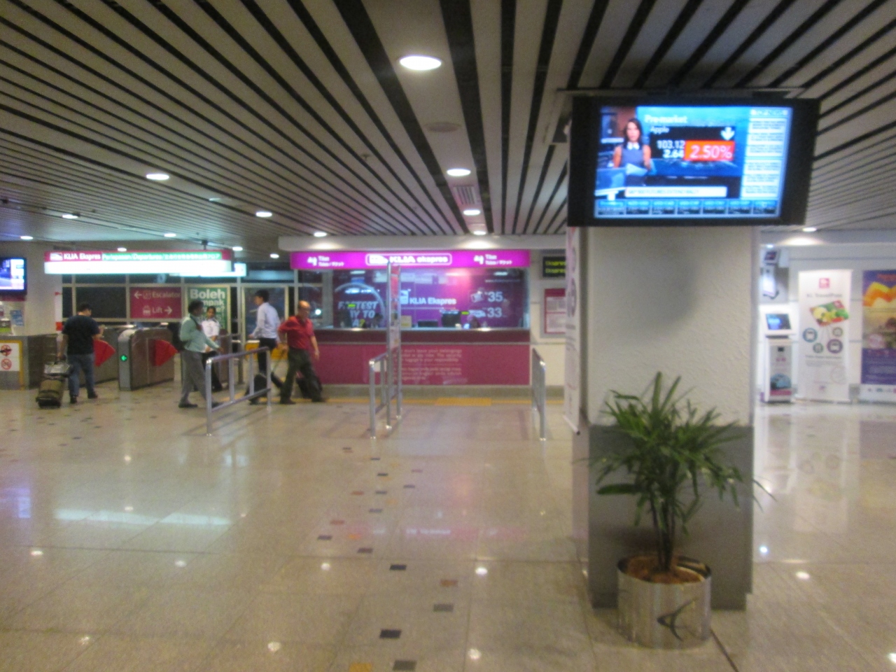 おそらく、KLのなかではもっとも運賃が高いKLIAエクスプレス、中心駅とは言えないぐらい静かでした。通勤ラッシュは過ぎたものの夜の時間帯にもかかわらず驚くほど空いていました。空港までタクシーを利用するのか、値段の高さで利用客が少ないのか不明ですが、空いていて良かったです。