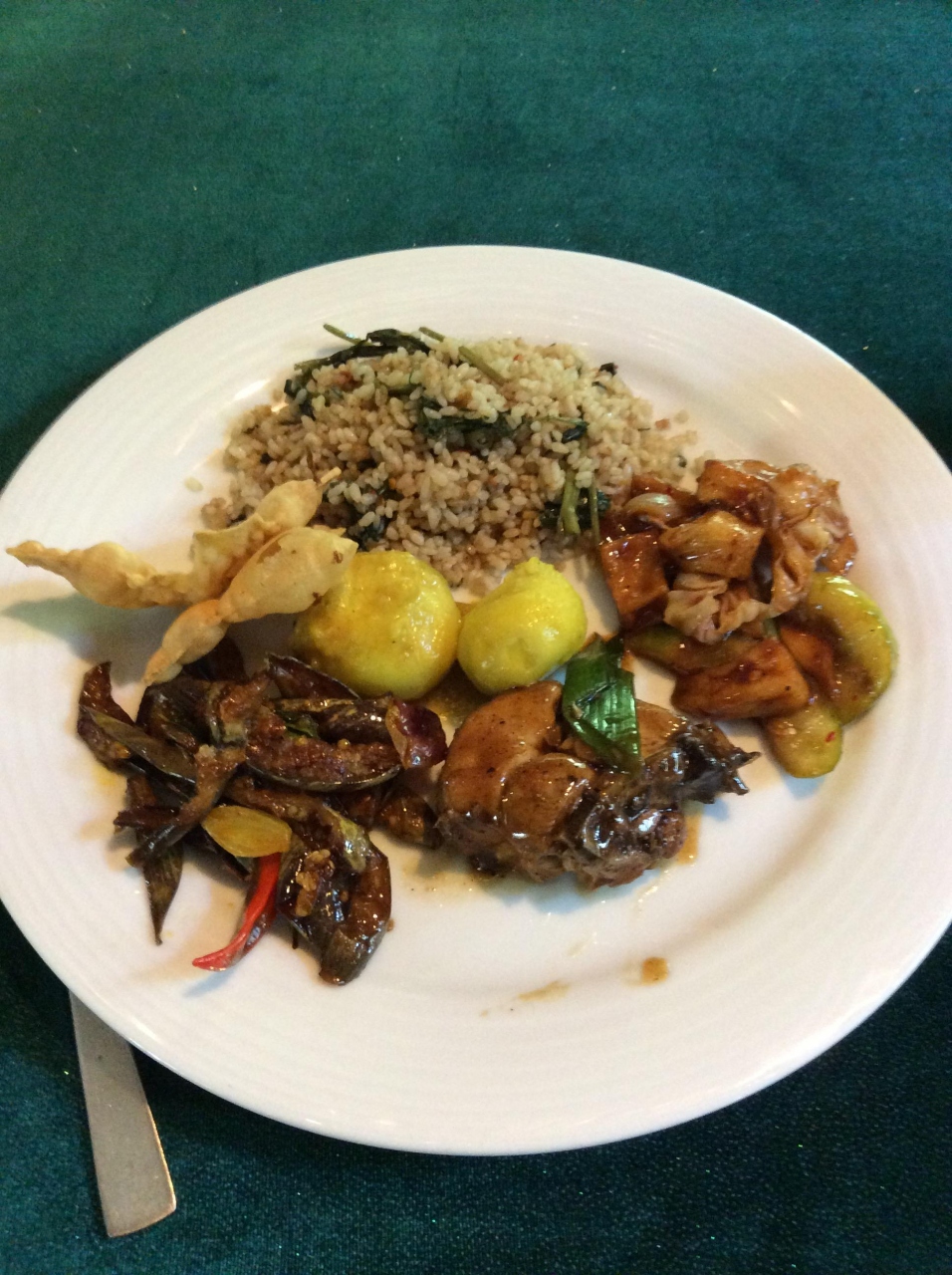 キャンディ観光の途中ランチ兼スパイス園見学で行きました。スリランカの多種スパイスを見学してからランチしましたので、辛いのは覚悟しましたが、何と辛く無い普通の味付けです。ここは観光客専用レストランでした。スパイスガーデン見学の途中無料のマッサージ(チップ500円相当は要求されますヨ!)が有りますが、顏のシミとりクリームは避けた方良いと思います。(その日のうちにカサカサ、痒みが出ました)