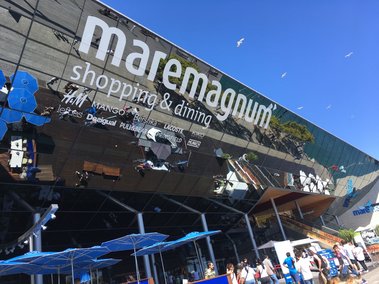 バルセロナでは珍しく日曜日も開いているショッピングセンターです。レストランフロアもあり、晴れていれば青い空と海を見ながら食事ができます。一階のトイレは有料で1ユーロでしたが、二階のトイレは無料でした。