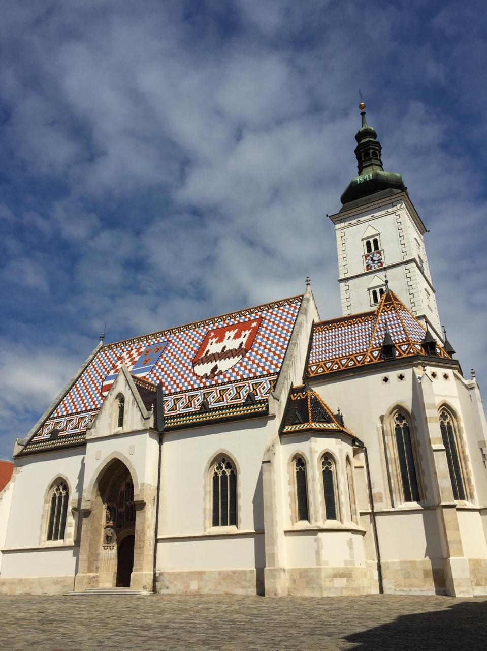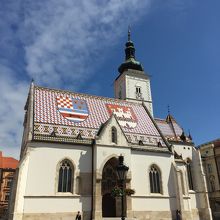 青と赤と白を基調としたタイル屋根が大変印象的です。屋根の紋章は、右はザグレブ、左はクロアチア&ダルマチア&スラヴォニアを表しています。私が訪れたときは、入口は閉まっており、中には入ることはできませんでした。