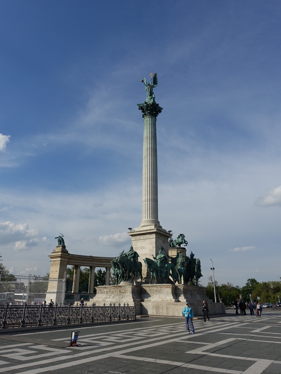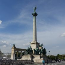 ブダペストの市民公園の一画にある「英雄広場」は、ハンガリー建国1000年を記念して造られた広場です。圧倒的な迫力で、特に空に聳えるように建つ記念塔のスケールにはびっくりしました。5月の青空を背景にとても絵になる光景でした。