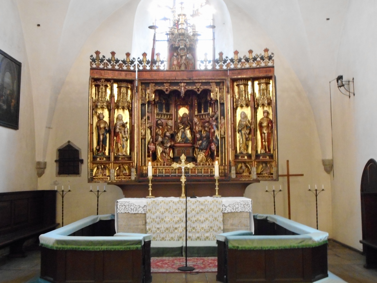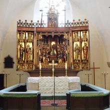 賑やかピック通りに面しており、壁面の大時計が目印です。入場料は1.5ユーロ。目を見張るのは15世紀にベルント・ノケトが製作した木造の祭壇です。精緻な彫刻で作られた像が見事で、時間を忘れて見入ってしまいます。