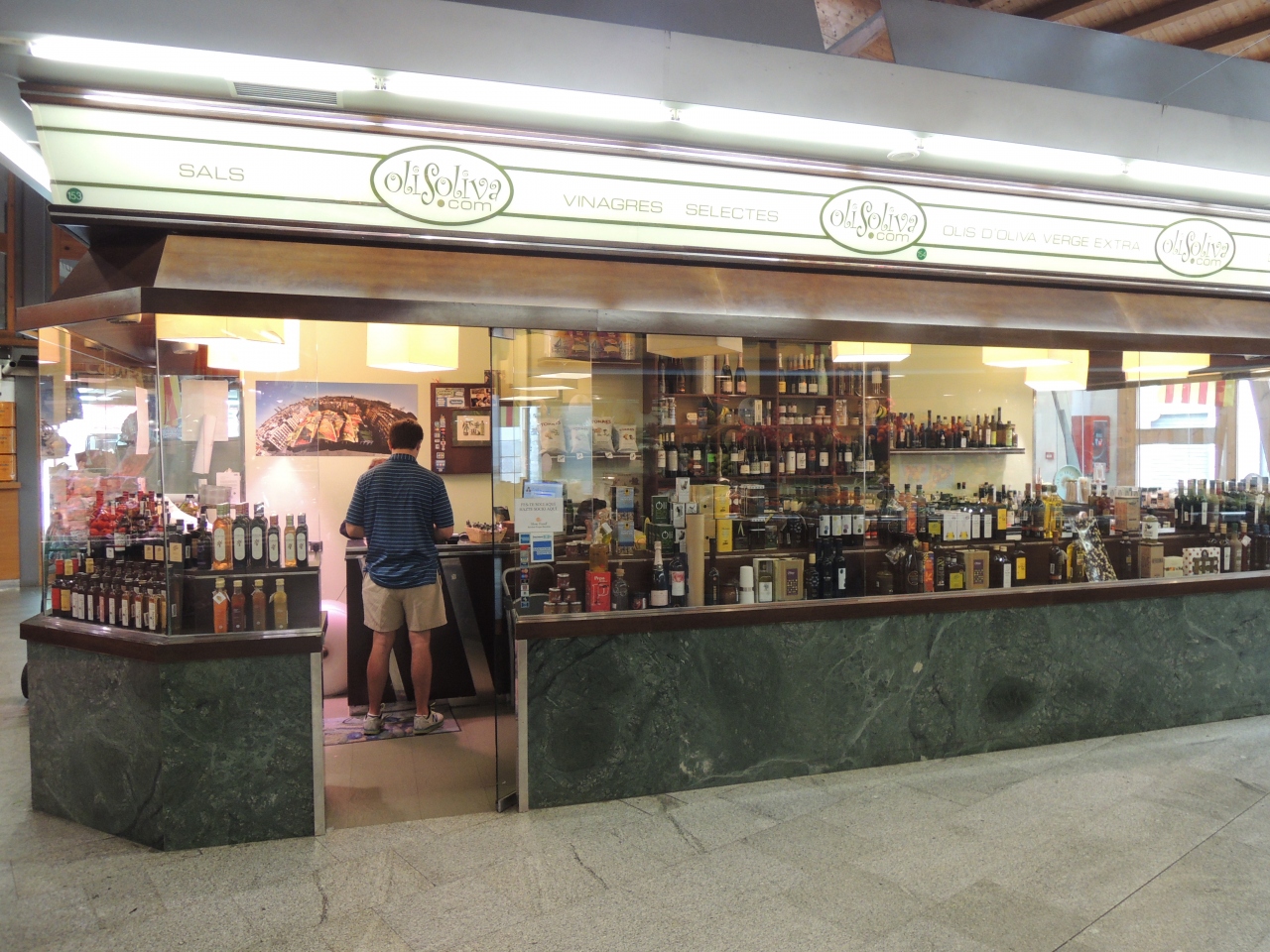 スペインはオリーブオイルの産地として有名なので、今回のスペイン旅行では、事前に調べていたあるオリーブオイルを探していたところ、立ち寄ったサンタカタリーナ市場に、このオリーブオイル店を見つけました。豊富な品揃えでしたが、お店の人に尋ねても残念ながら目当てのオリーブオイルを見つけることはできませんでした。オリーブオイルの他、化粧品類もいくつかあって、結局オリーブオイル由来のリップクリームも自家用とお土産用に購入しました。オリーブオイルはエルコンテイングレスにもありましたが、少しこちらの方が安かったようですので、お土産でオリーブオイルを探している人にはお勧めです。