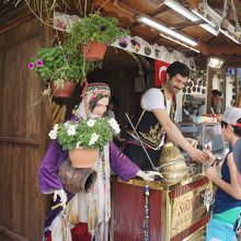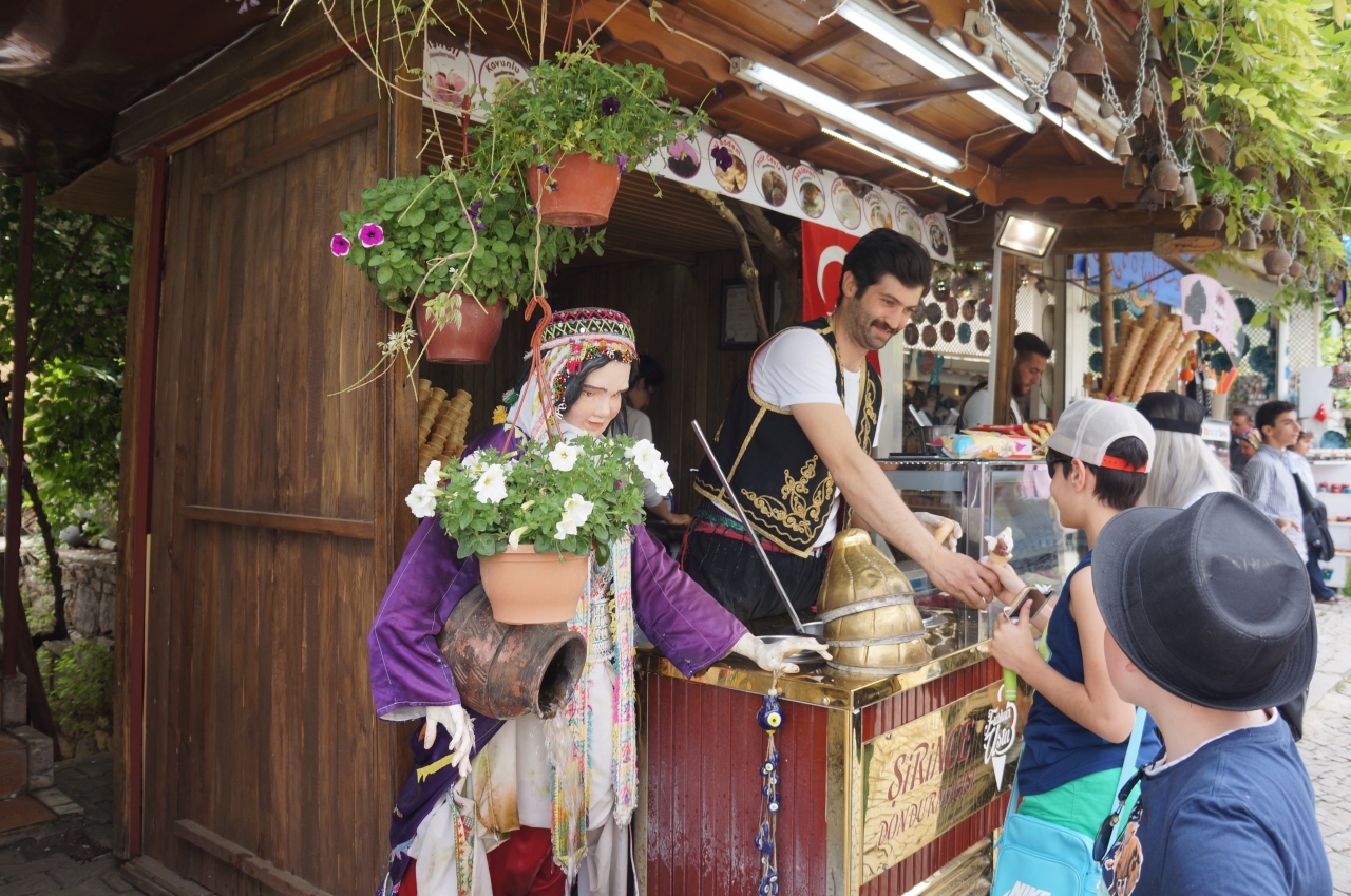 セルチュクのバス停からミニバスで20分ほどで到着。山道を超えた場所にある小さな村です。観光地化されていていますが、程よい賑わいで、お土産屋さんやレストランがたくさんあります。景色もよく、ショッピングや散策ができます。フルーツワインも有名で試飲もできます。