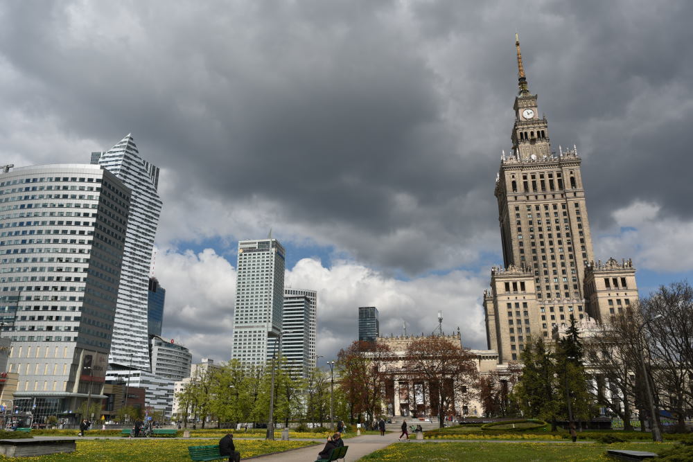 スターリン時代の建築で共産主義の威光を示すためのデザインのため周囲への威圧感十分です。完成した際のワルシャワ市民の複雑な感情を想像できます。