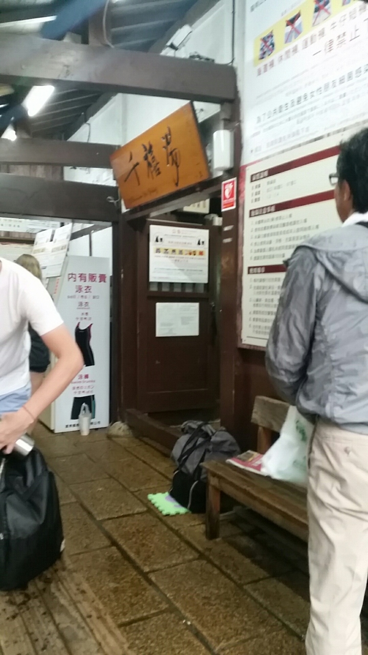 ここは事前のネット情報では、混浴のため、水着を持参が必要ということで、持参したのですが、入口のチケット販売機で入湯料45台湾ドルを払い、入口から入ろうとしたら、店員から、水着を見せるように言われ、見せると、きちんと見もしなくて、「これはダメ」ってダメだし。もう一人の友人も同じ。