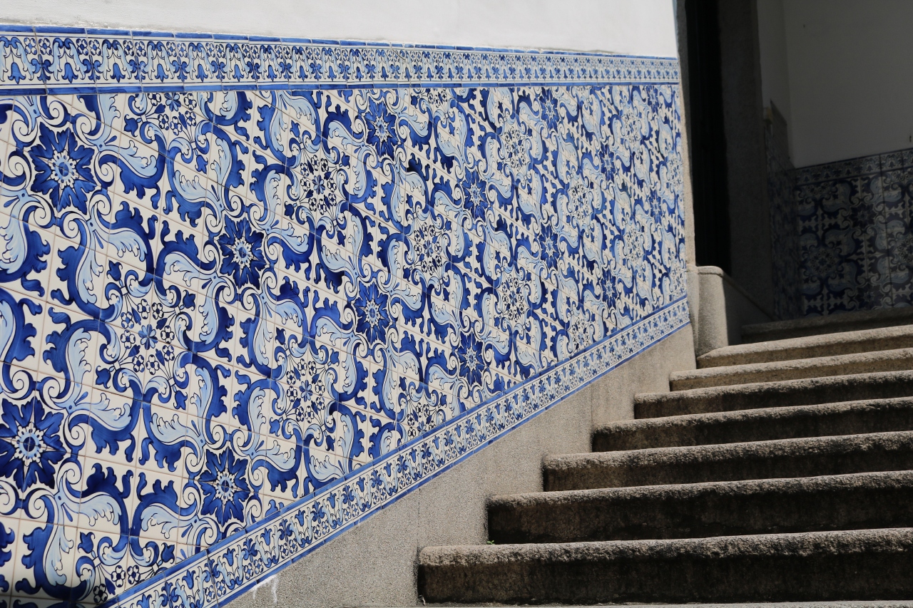 中庭へ行く壁にはポルトガル文化を思い起こさせる美しいタイルのアズレージョが残されています。見逃せないのが2階から見渡すセナド広場。ガラス越だから完璧にピントは合わないけど、この旅のベストショットの候補の1つが撮れました。