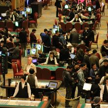 唯一カジノ内部の写真を撮れる場所かもしれません。といってもカジノフロアではもちろん禁止。ヴェネチアンマカオのモールの中心にある大階段からなら撮影もOKなんですよ。意外とよく見えますのでオススメの場所です。