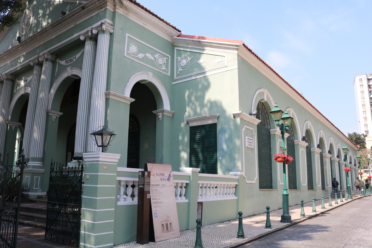 南のほうから行くと、細い路地を通って、ちょっとした坂道を上がることになるので場所はわかりづらいです。マカオの欧風建築物はパステルイエローのカラーが多いので、ミントグリーンの外壁は良いアクセントになっています。