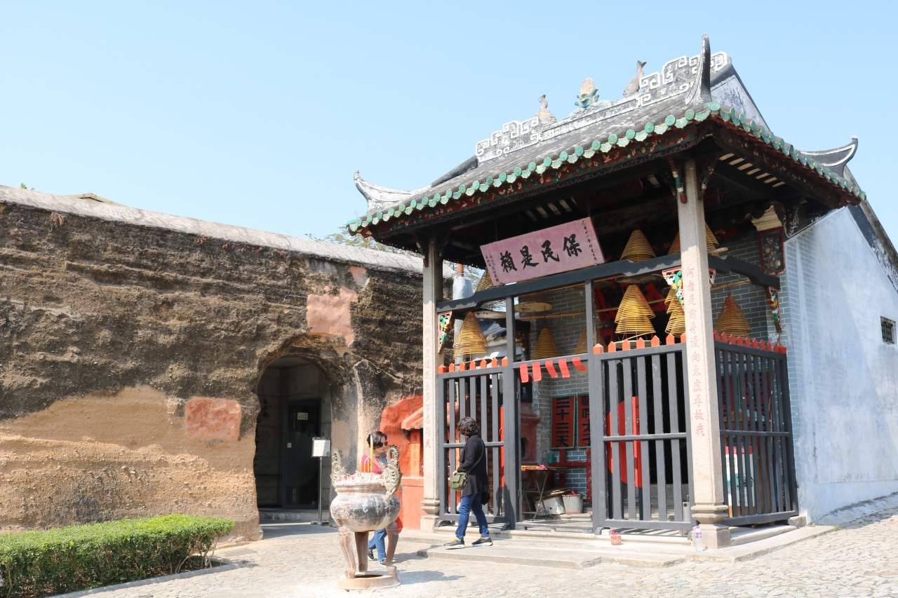 聖ポール天主堂跡を上がったところにある、小さな廟です。言われなければ全く気づきませんが、これでも世界遺産の1つになります。媽閣廟を二回りほど小さくした廟で、巨大なうずまき型のせんこうがいくつかぶらさがっていました。