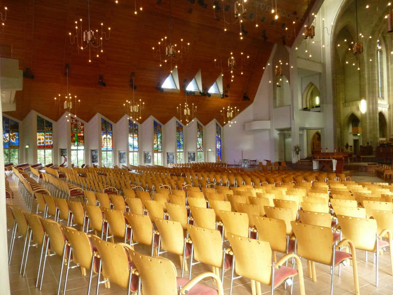 パーネルの新旧2つ並んでる教会の新しいモダン建築の方!