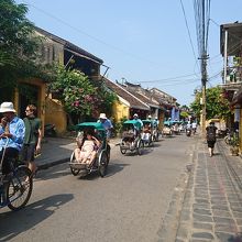 ホイアンのチケットが必要な歴史的な建物はこの通りに多くあり、ホイアンのメインストレートと言っていいと思います。メインストレートだけあって人や自転車で通っている人が多く、シクロの行列などにあたると結構混みあいます。
