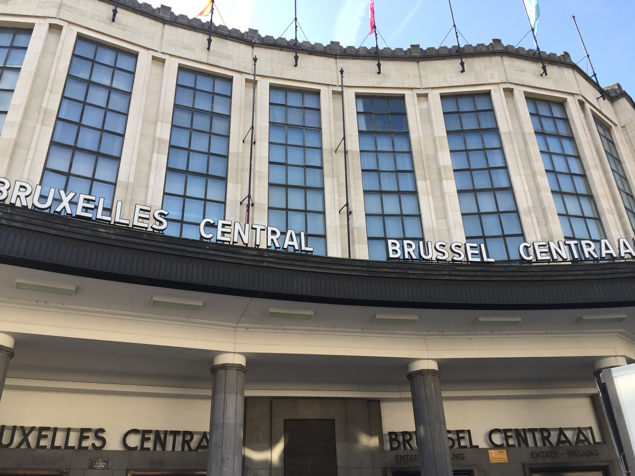 駅名の通り、街の中心に位置しています。観光スポットも近くに点在していて、有名なグランプラスも徒歩圏内です。長距離列車の発着や空港線など、色々な列車が通っていて、朝から混雑していました。ちなみに空港線はメインのホームから少し離れた地下ホームでした。