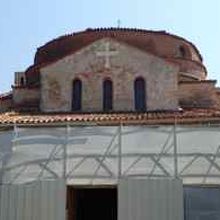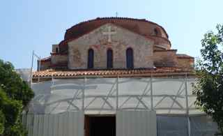 トルチェッロ島は小さく、レストランがいくつかと、一番奥に教会が2つあるくらいですが、そのうちの一つの教会です。外観は丸い屋根を持つコロンとした形の可愛らしい教会で、外観は修復中でした。
