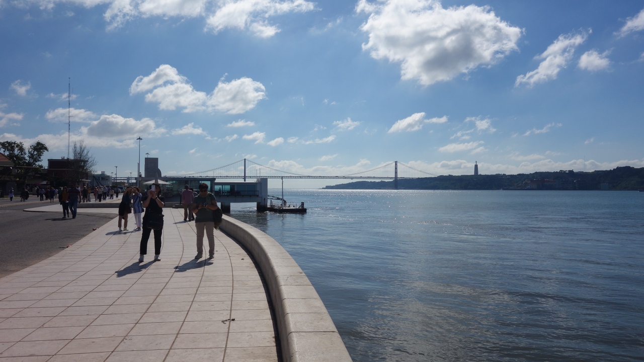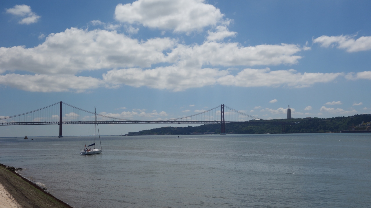 リスボンは大西洋からテージョ川を少し上ったところにあります。そう,リスボンは大西洋には面していないのです。テージョ川もここにくると川幅がとてもひろく,海と区別がつきません。リスボンあたりまで来ると,湖のようになっています。リスボンとテージョ川は切り離せません。