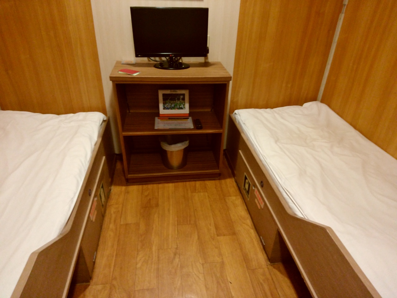 大阪~釜山、6月にツアーで利用しました。オフシーズンだからなのか?料金は激安でした。往復のフェリー代に釜山でのホテル1泊付き、がなんと!1人9800円でした~!部屋はツーリストB(ツインルーム)です。