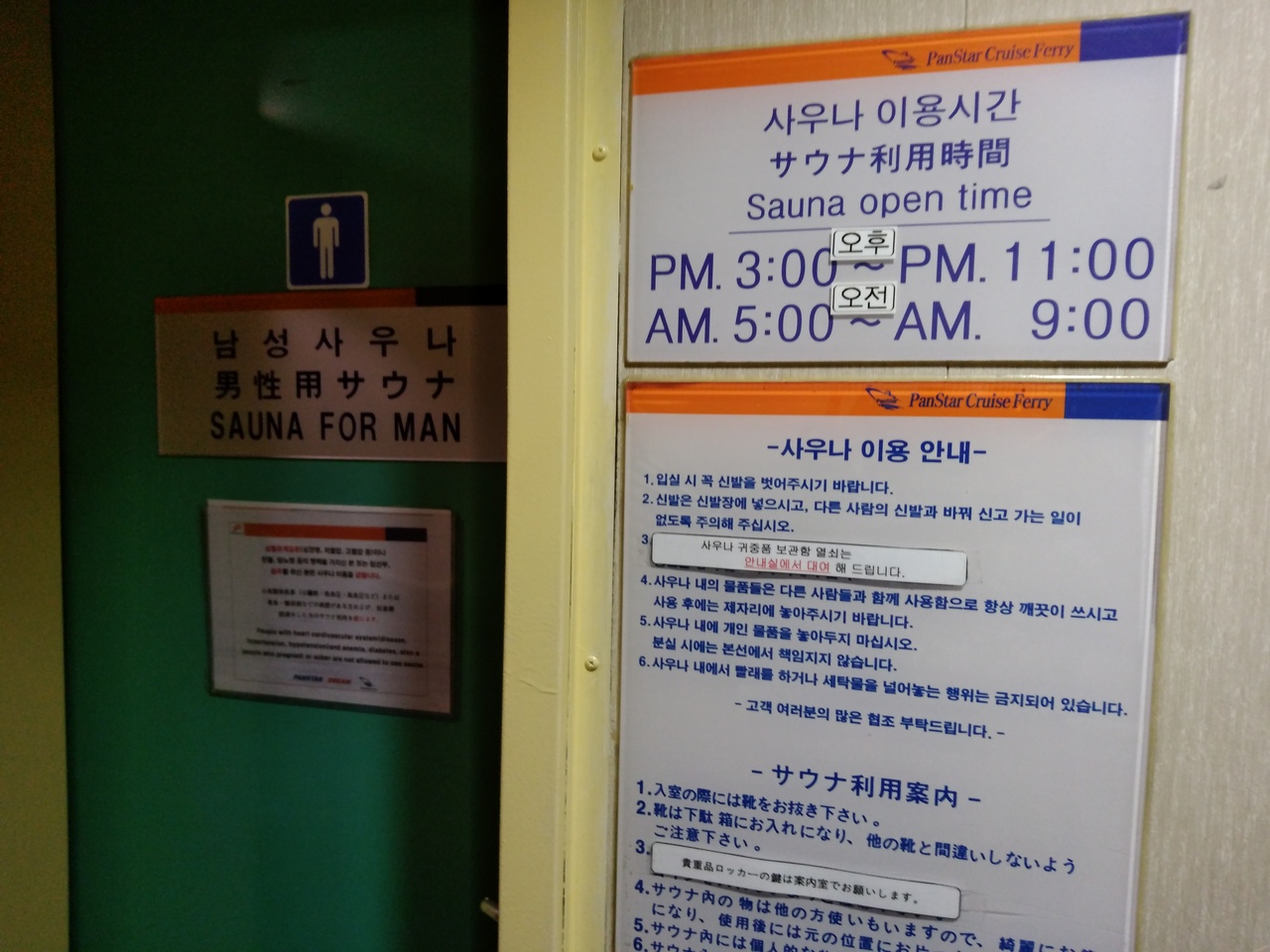 船内にはコンビニやレストラン、小さな免税店があります。フロントで両替もできます。電子レンジはコンビニ内に設置。お風呂場は大浴場で、シャンプーと石鹸あり。WI-FIは「夢」というカフェでのみ、使用できます。往路はカラオケ大会、復路は手品ショーがありました。