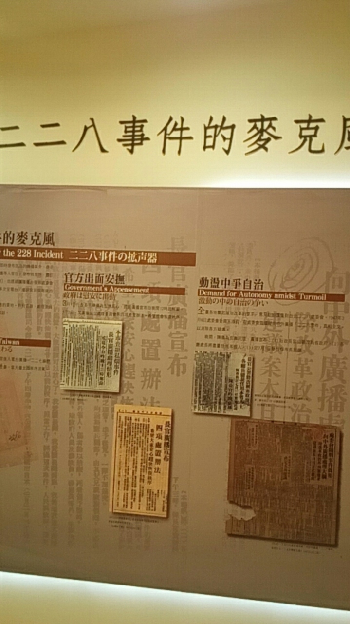 二二八和平公園に中にあります。通常は有料ですが、この日は無料で入場することができました。この公園の名称にもなっている日本統治後の事件の展示が豊富に揃っています。本省人と外省人の争いの面だけでなくその遠因となった日本統治にも目が向けられているので日本人として厳しくも見る価値があると思います。