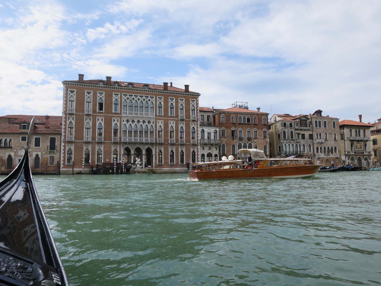 水の透明度は余りありませんが、色々なゴンドラや船が行き交い