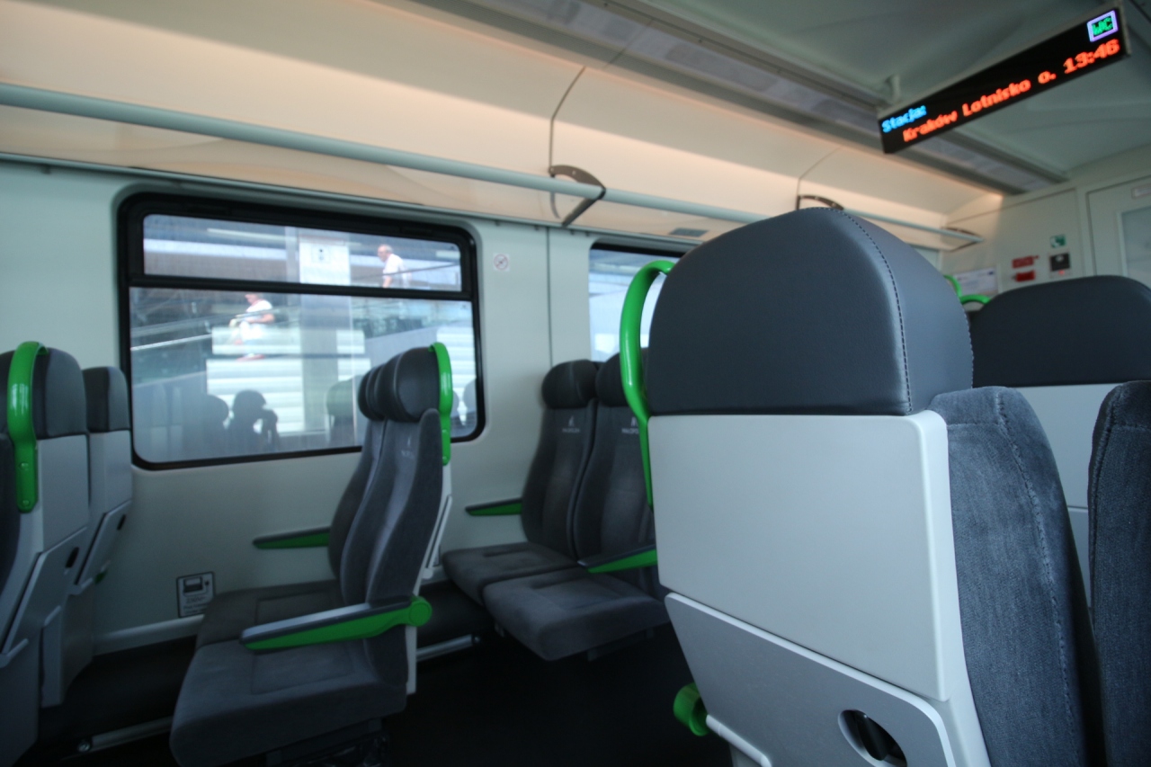 電車はいかにも欧州!って、テイストの車両が来ました。車内も欧州風でオシャレでした。