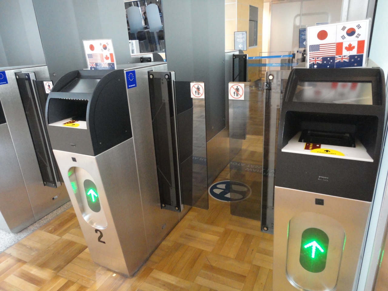 すごく大きな空港ですが日本人の利用が多いようで、日本人スタッフをいろいろ見かけるし、日本語の表示もけっこうありました。特定の国(もちろん日本も入ります)は、自動出入国審査(自動化ゲート)でICチップ入りのパスポートを読み取らせて、顔認証で済ませられるので楽です。広い空港なので職員がキックボードに乗って移動していました。