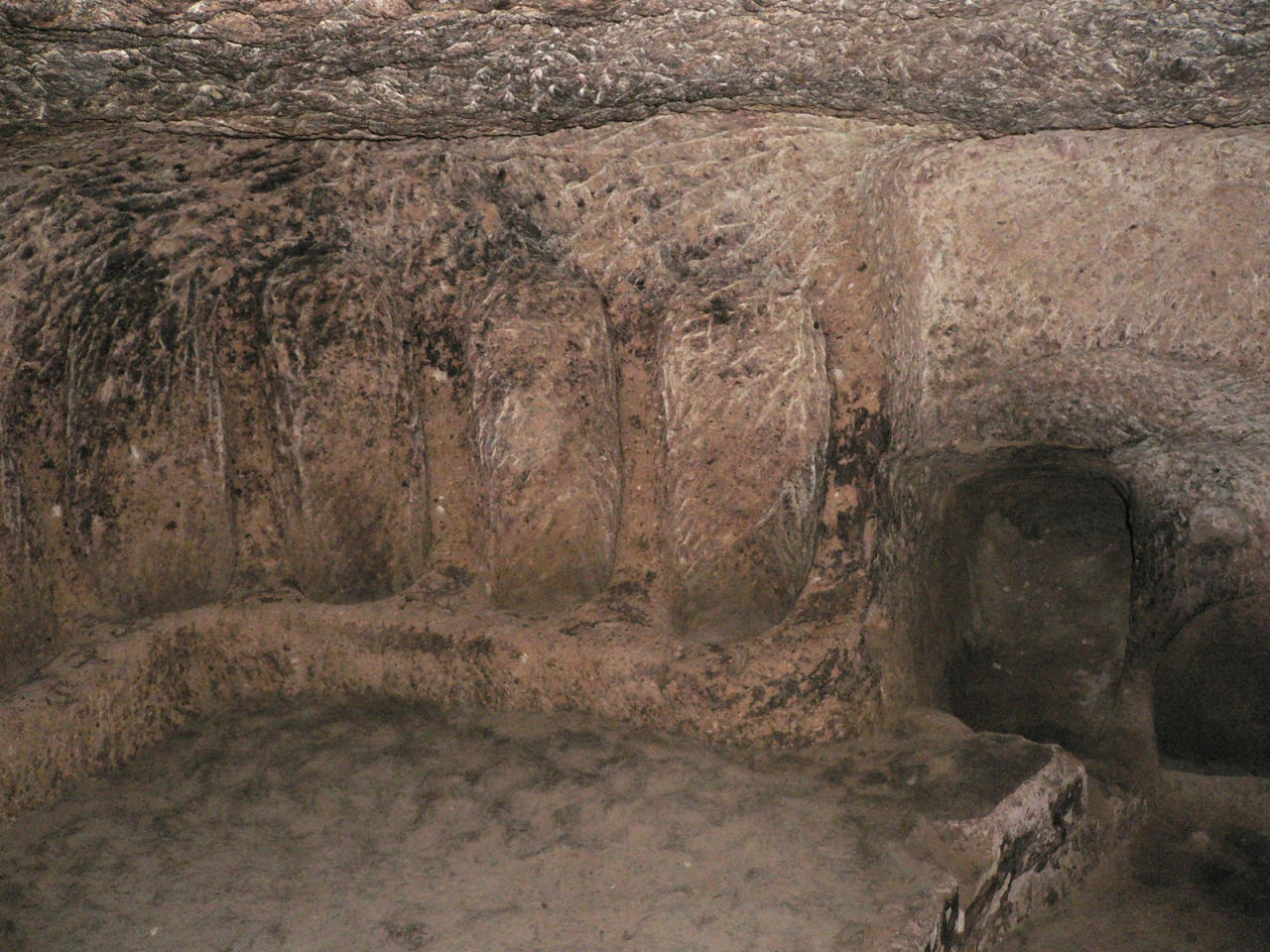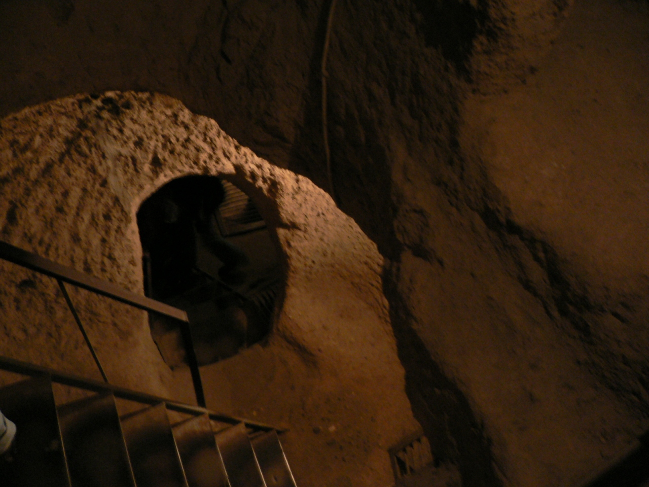 キリスト教徒がアラブ人の圧迫から隠れて住んだ地下都市で、カッパドキア300以上あるそうですが、狭い通りを体をかがめて歩き、その生活の場の台所や食糧庫、そして、祈りの場の教会まであり、こんなところで隠れて生活したとは、なんと、痛々しいと辛い、感慨深い場所でした。