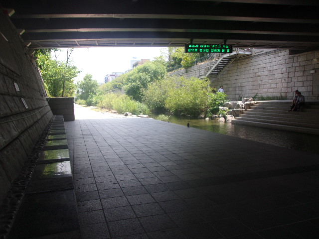今回はトランジットツアーの自由時間を利用して訪問しました。ツアーの立ち寄り先が広蔵市場でしたので、ここから近い馬塵橋から世雲橋までを歩きましたが、6月半ばの暑い日で、それぞれの橋の下に設けられていた休憩所で涼むと、スゥーとした風が吹き抜けていって、とても心地良かったです。同じ清渓川沿いでも、西端の清渓広場付近は多くの人で賑わっていて、休憩にも場所探しに苦労することがある一方で、この辺りだと、基本的に観光客は少なくて、地元の方がのんびりと過ごしている風情を楽しめるのが良いです。