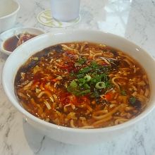 ユニバーサルスタジオシンガポールに入る前にあります。お昼時は少し並んでいました。本格的な手作り小籠包を美味しくいただきました。レンゲに、タレを付けたしょうがをのせ食べると最高ですね。一緒に食べた酸辣湯麺も酸味がきいて美味しかったです。