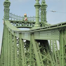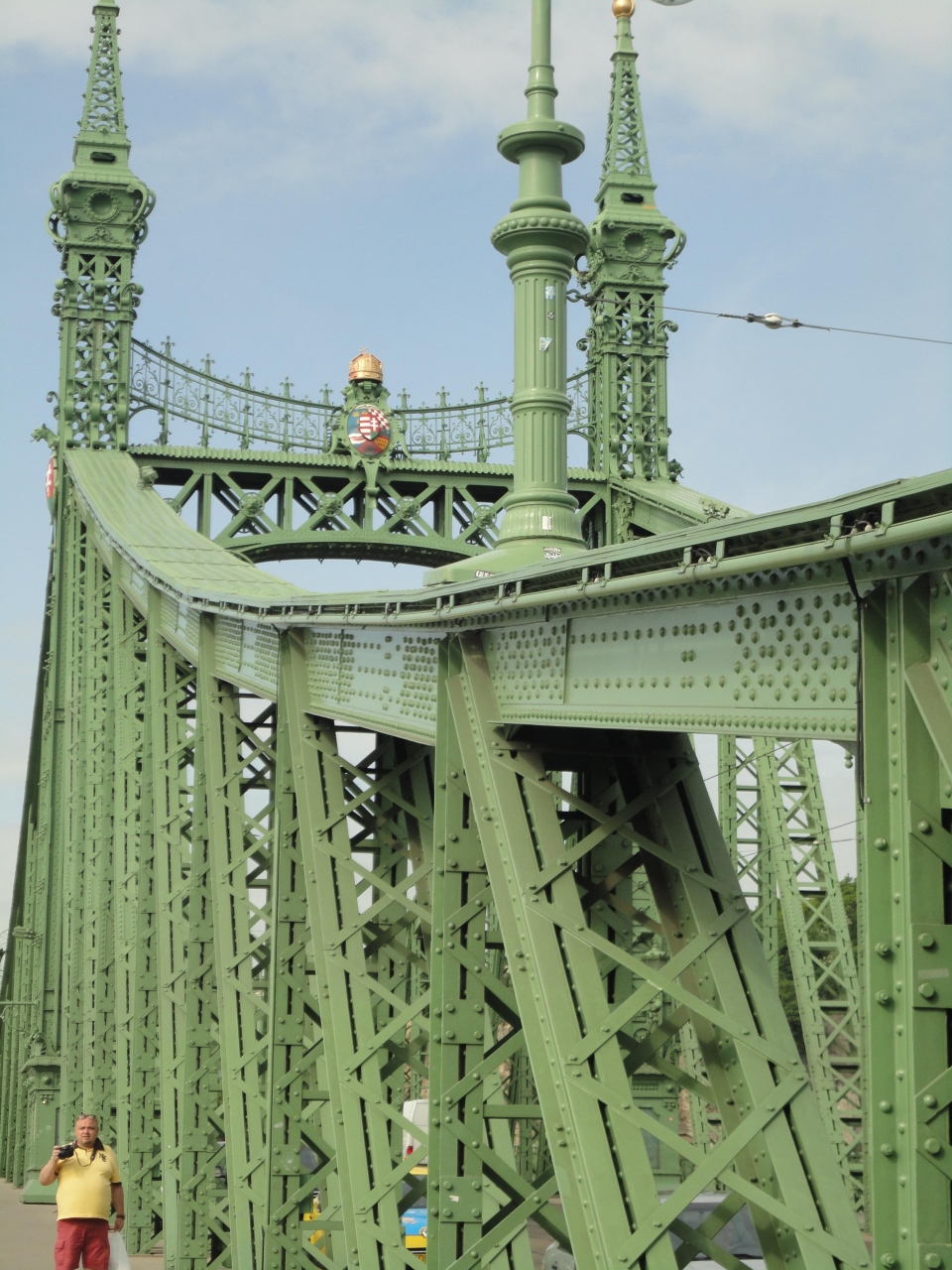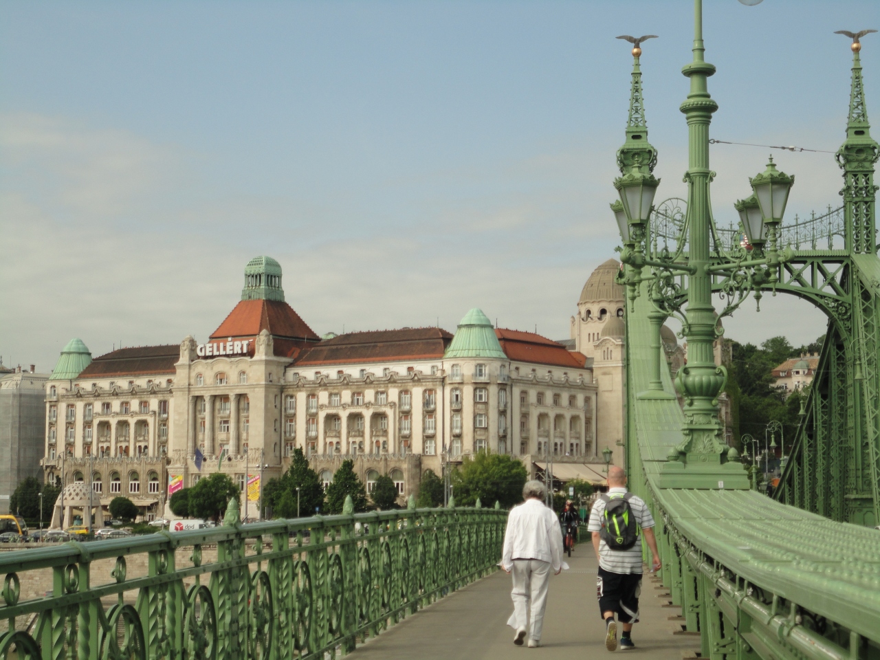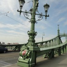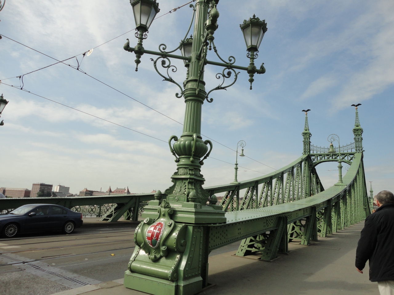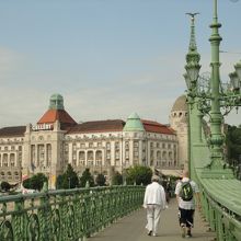 ヴァーツィ通りを歩行者天国とは反対側、ラーコーツィ通りから向こう側をまっすぐ歩いた突き当たりに中央市場があります。そのすぐそばが自由橋です。上品な緑色で紋章があったりするかっこいい橋です。渡り切ったブダ側にはゲッレールト温泉とホテルがあります。