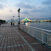 ハン川の遊歩道から夜眺めるのが最高です。レインボーカラーのネオンが点灯し、ロマンチックな気分が味わえます。遊歩道にはカメラマンがいて、仲の良いカップルは写真を撮ってもらえます。ドラゴン橋と並行して見れますが、交通量が多いので、道路の横断は気をつけましょう。