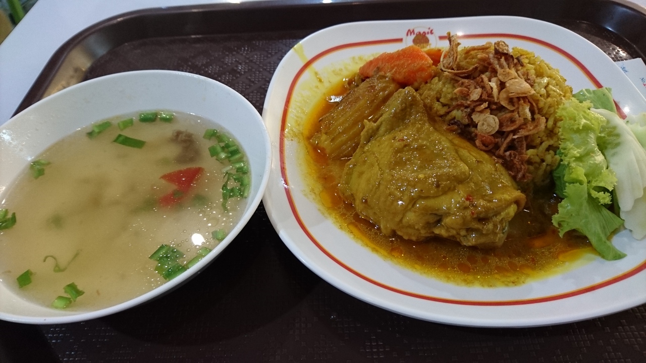 美味しく辛いチキンカレーはスープ付きで60バーツ程。