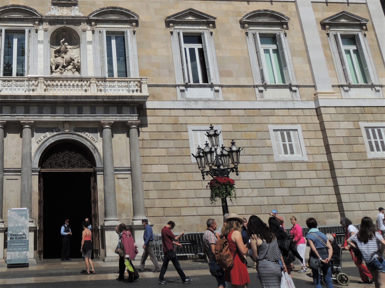 ゴシック地区のバルで朝食をとり、付近のショップで買い物を楽しんだ後立ち寄ったのが、この広場でした。バルセロナ市庁舎やカタルーニャ自治統領館に囲まれて人もたくさんいました。広場自体は特に何があるというわけでなく広い広場でしたが、ローマ時代バルセロナの中心地であり、街道が交差する交通の要衝であったようです。