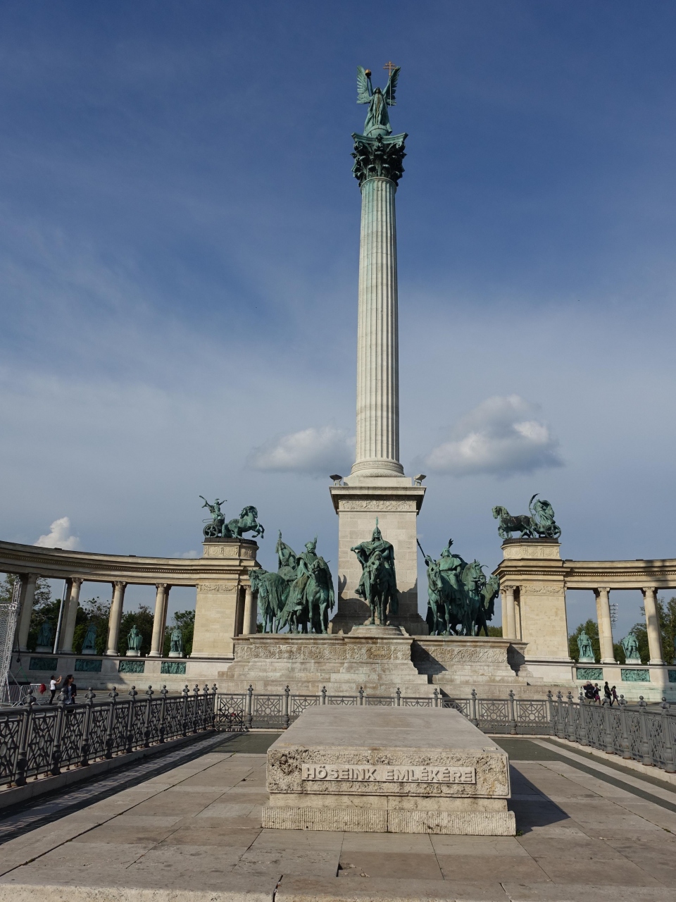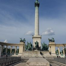 市内を見渡すように建てられている、記念搭、それを囲むように歴史上の人物像が半円形に配置されています。その向こうには、市民公園の緑、右手に現代美術館、左手に、西洋美術館、と、印象的な光景です。ただ、残念だったのは、イベントのための準備か足場が組まれていて、その風景を一帯で見ることができませんでした。