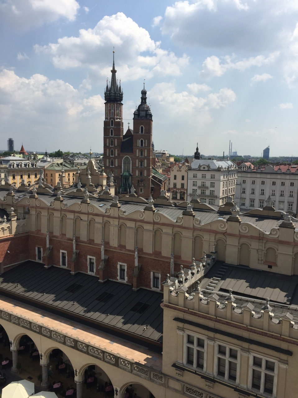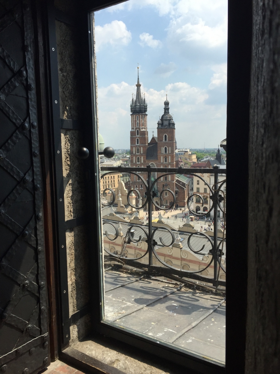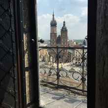 塔の上には、展望スペースがあり、旧市街を一望出来ます。特に、織物会館、聖マリア教会向きの眺望は見応えがあります。