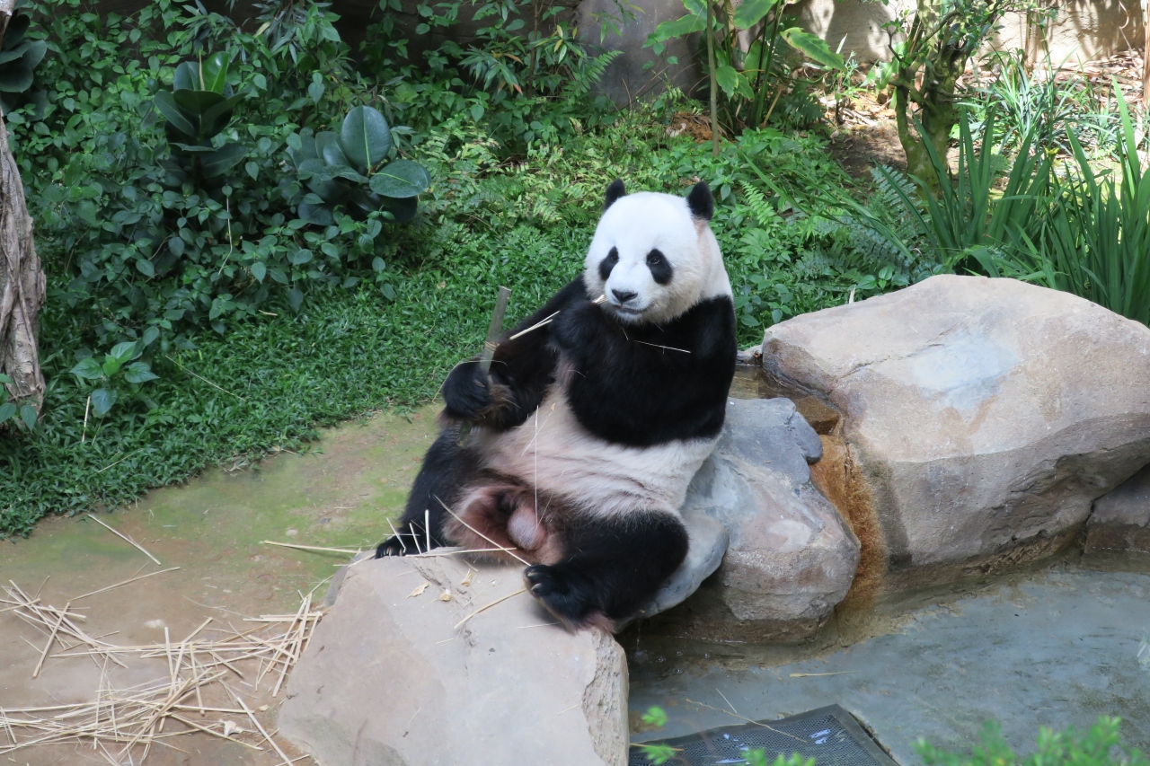 広い敷地内には、お約束のキリンやライオン、トラなどのほかに、パンダもいます。