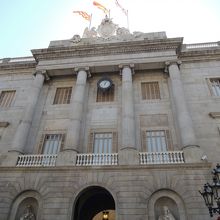 ゴシック地区のバルで朝食をとり、カテドラルに行く前に立ち寄ったのがサンジャウマ広場にあるバルセロナ市庁舎でした。カタルーニャ自治統領館の正面にあるこの建築物は、正面ファサードは19世紀に修復されたネオクラシック様式で、側面はゴシック様式と、二つの異なる建築様式が混在する珍しい建物のようです。その違いをぜひ確認してみてください。
