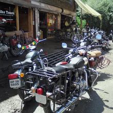 マナリー市街とヴァシシュトの間にバイクの整備を兼ねたレンタルショップが数多くあります。もちろん1日単位から借りられますが24h制ではなく返却は閉店時間までのところが多いです(20:00前後)。運転免許証が必要ですがコピーか写真でもOKです。あとパスポートコピーも必要。何軒か回って料金を調べました。基本、大型になれば料金は高くなります。1日当りの料金です。長期なら割引に応じてくれると思います。