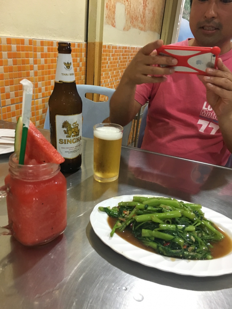 シンハービール2本とスイカジュース、3品とカオニャオマムアンで3,000円程でした。