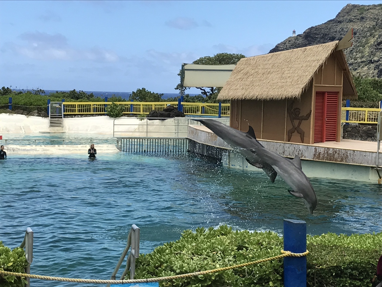 ワイキキからThe Bus23番 Hawaii Kai-Sea LifeParkに乗り(カハラモール止まりもあるので注意)約1時間半。終点で下車すると目の前が入口です。チケットを購入してShark Caveを見ながら中へと入って行きます。アシカやイルカなど何ヶ所かでショウがありますが、1日に何回もやっていないので、目的があれば時間を調べて行かれた方がいいと思います。