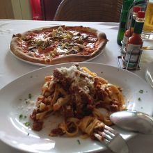 サヌールでは有名なイタリアン。チャリンコ漕いで行きました。2輪なら目の前の道路に数台停まっているのでそこに。昼前は店内ガラガラです。入店客は皆屋外のテラス席に行ってしまうので。暑いので店内のほうが良いと思います。パスタとピザを注文。単品1000円切ってるけど美味しいですよね。料理よりお酒のほうが高いくらい。最初に運ばれたもちもちのパフも美味しい。量がそこそこあるので注意です。最後にジェラートが食べきれなくなります。。